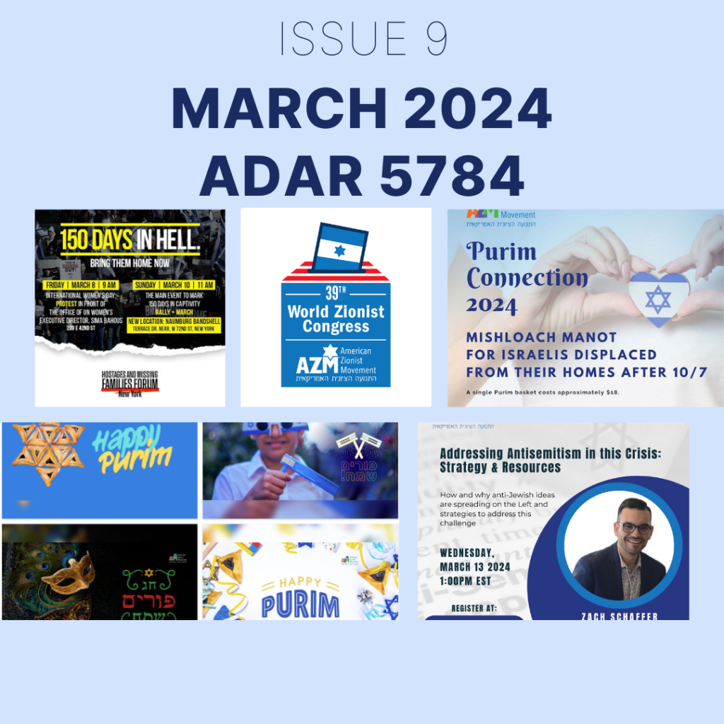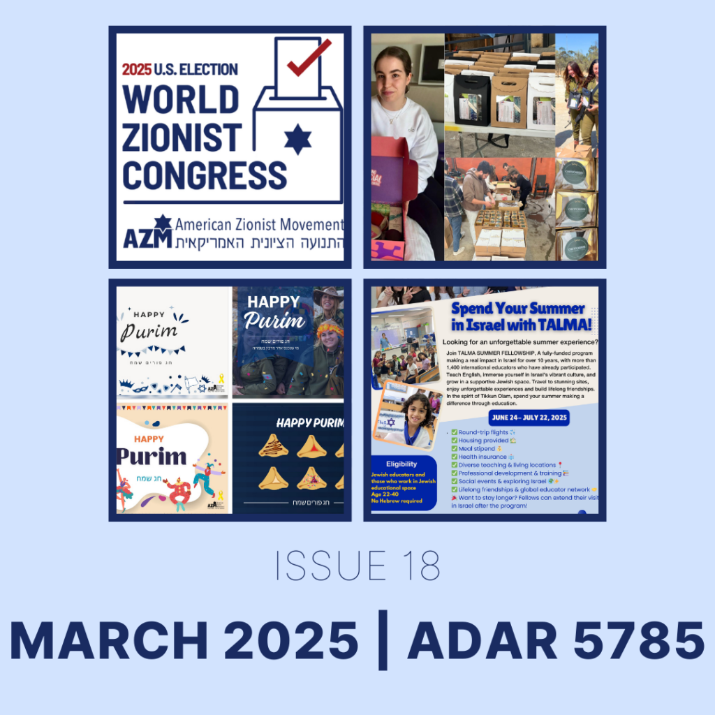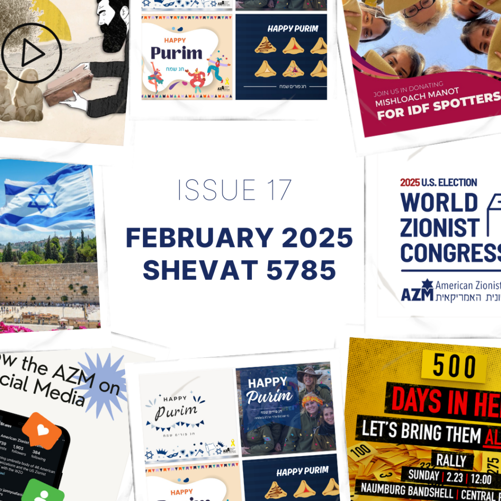 As the convening body of 51 national Jewish Zionist groups in the Unites States, AZM regularly shares timely updates from including from our constituents and our partners at the World Zionist Organization in Israel. These insights keep you informed, connected, and engaged—we encourage you to share important content with your network and help amplify our collective voice.
